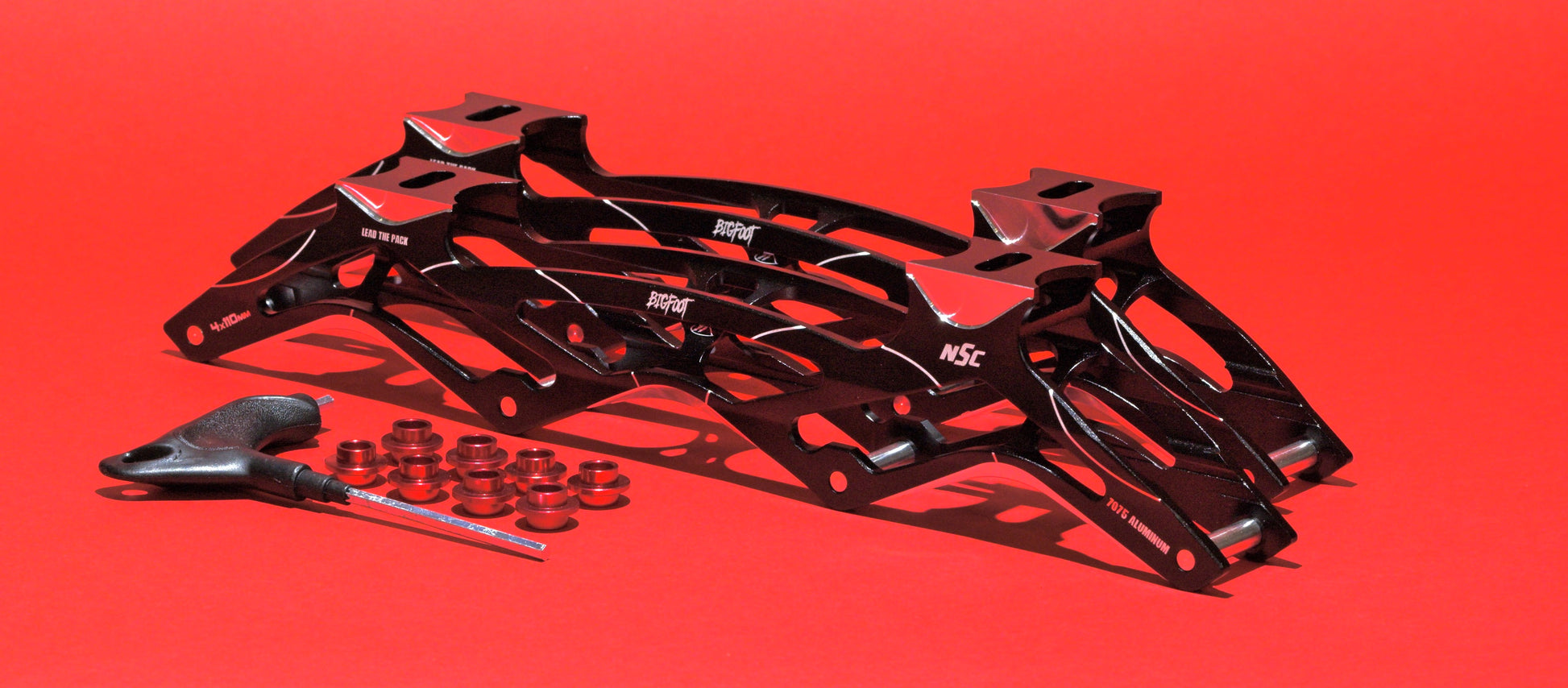 As a follow up to our Flagship NSC Big Foot Race Frames, we wanted to introduce the NSC Big Foot XL. The Big Foot XL appears to be visually the same as our Big Foot Frame, however subtleties make a world of a difference. The BigFoot XL is made with 7075 series aluminum vs 7005 series aluminum. This along with a new engineered design for the cross brace supports makes the BigFoot XL skate much different from the flagship Bigfoot. So who is this frame for? It's for the real power skaters. Those who are willing to give up some turning ability in exchange for more stability and more power into the ground.